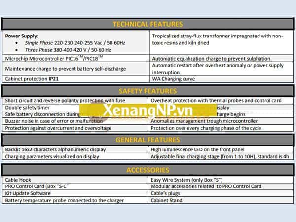 – Đặc tính kỹ thuật máy sạc dòng SE
